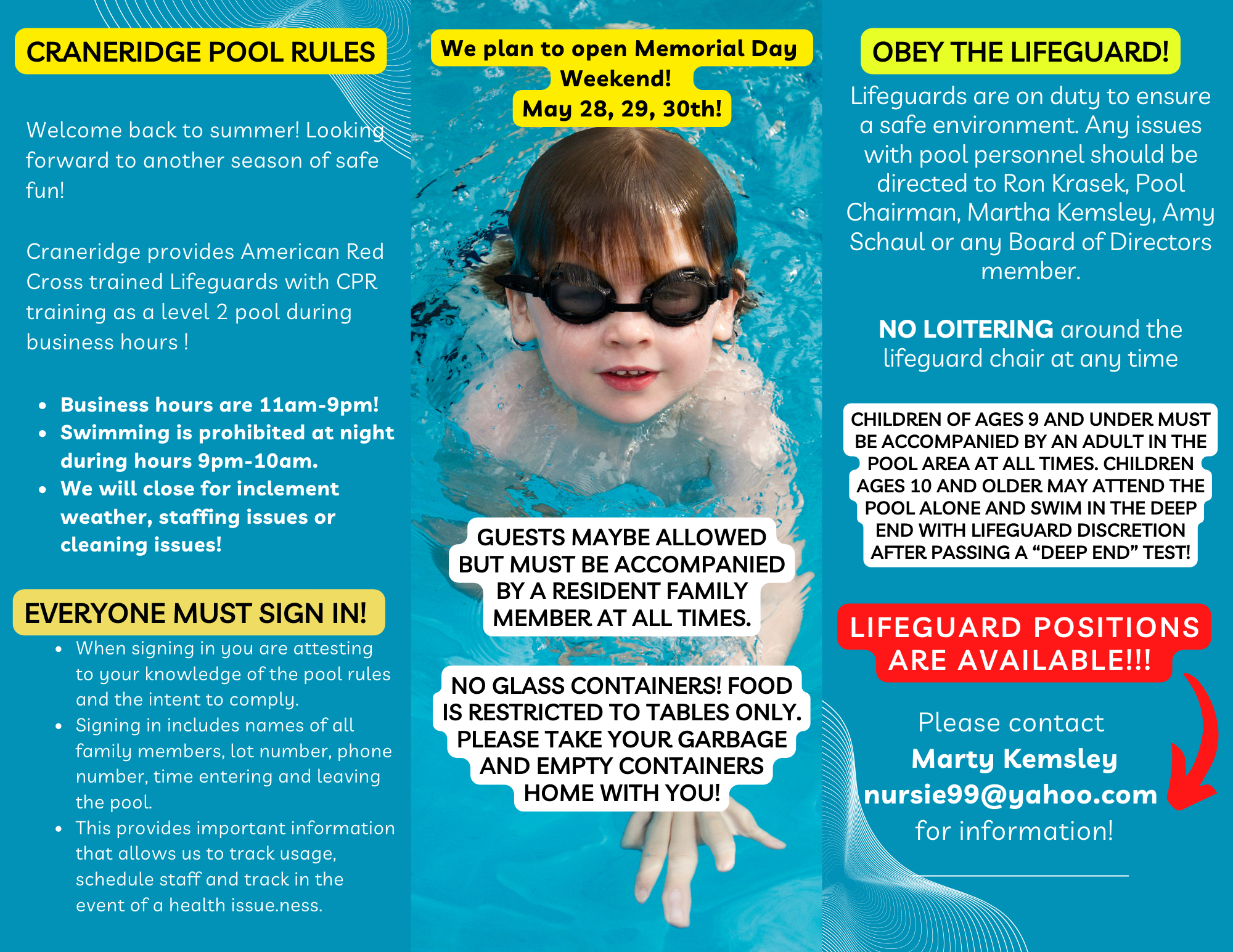 The Craneridge Pool will be open this weekend!Memorial Weekend Hours [...]