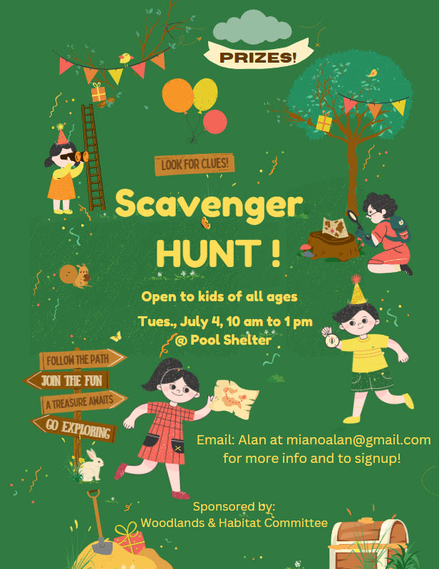 Start the July 4 celebration with a super fun outdoor activity. For kids and adults of all ages. 10 am to 1 pm at the Pool Shelter.