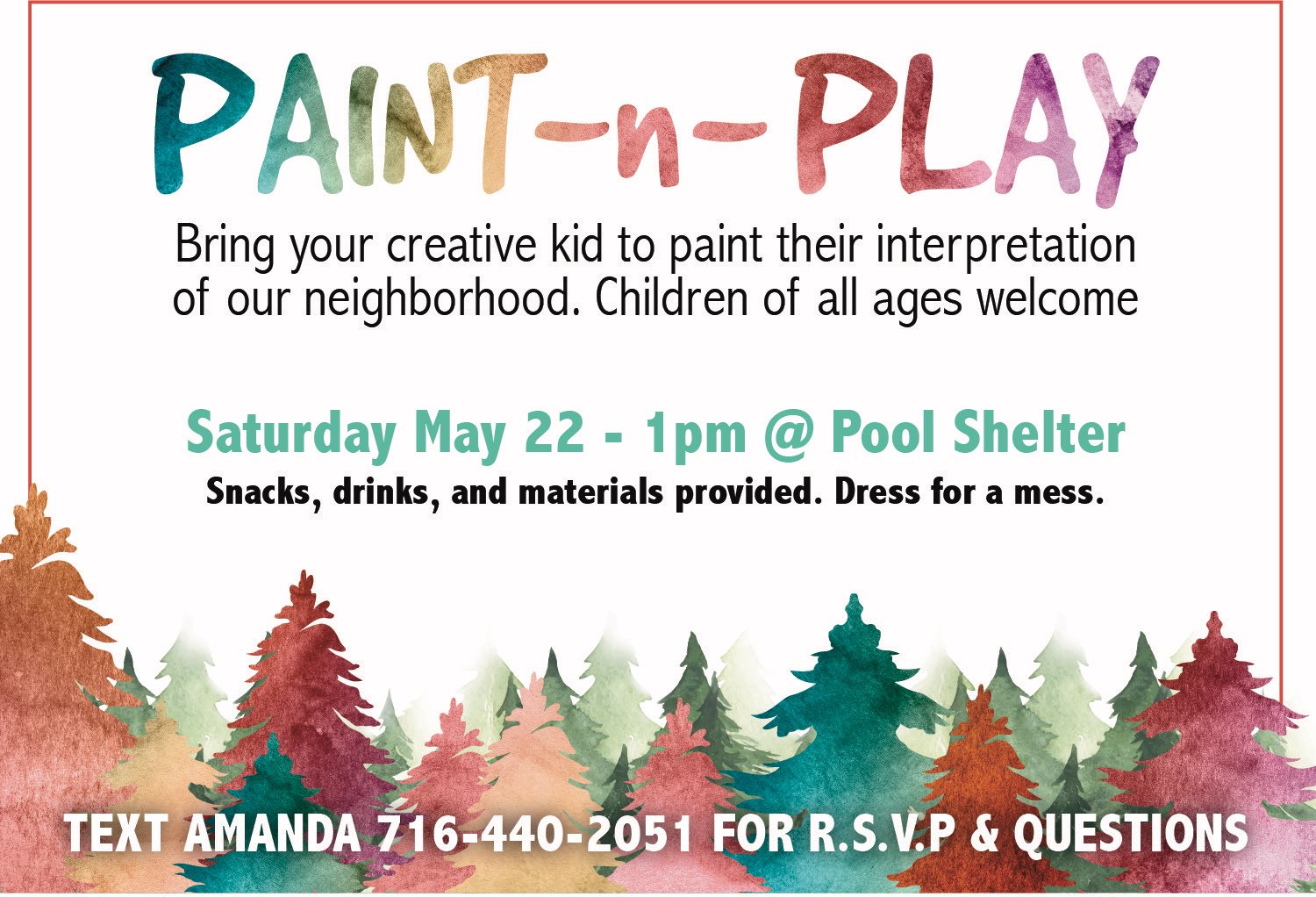 All supplies will be provided. Please RSVP by texting Amanda at 716-440-2051