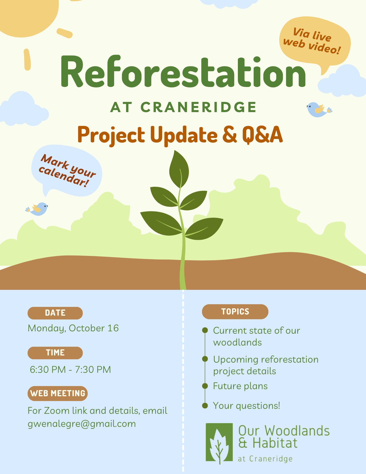 Hear the details about the Woodlands & Habitat 2023 reforestation project. Questions? This will be the place to ask. Learn more about our effort here.